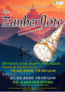 Aufführungen finden statt am Donnerstag, den 19.02.2026 um 19:00 Uhr und am Samstag, den 21.02.2026 um 18:00 Uhr in der Aula der IGS Oyten.